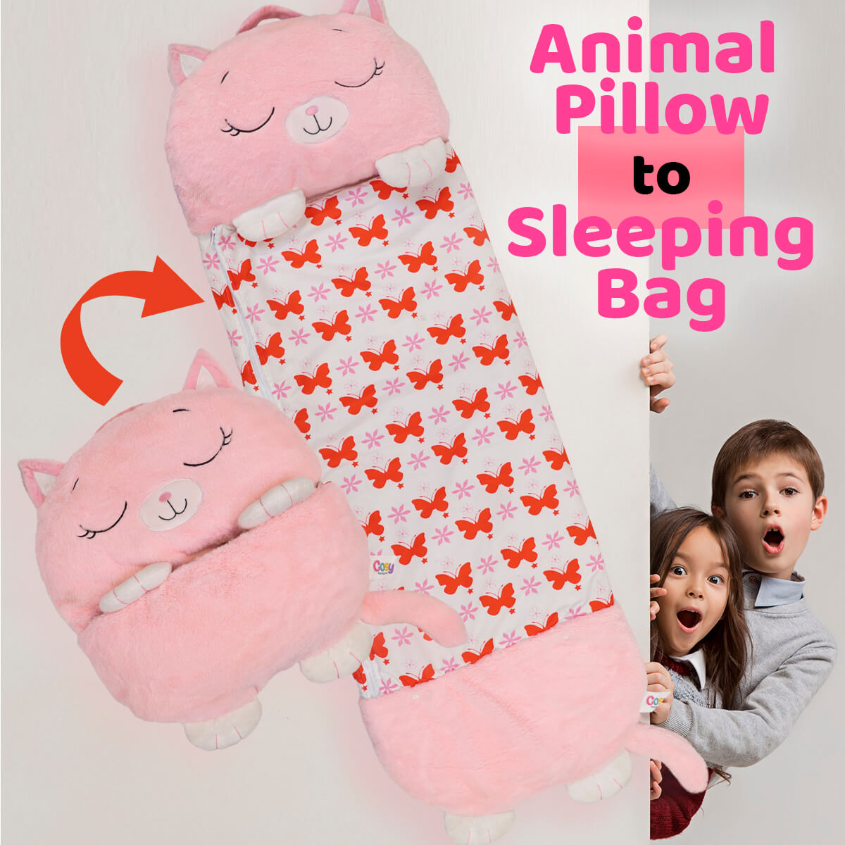 Transform the cute, fun-shaped pillow into a warm and inviting sleeping bag with a simple zip-up design.